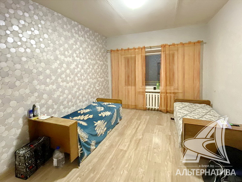 3-комнатная квартира, г. Барановичи, ул. Ленина, 1973 г.п., 5 / 5 кирпич, 67,9 / 65,5 / 47,3 / 6,8, санузел раздельный, один балкон, одна лоджия, один стеклопакет, межкомнатные двери - массив, входная дверь деревянная, потолки - 2,50 м, полы - ламинат (положен на доску), стены оклеены обоями, телефон, домофон. В квартире частично произведен ремонт. Квартира расположена на две стороны. Чистый подъезд. Капитальный ремонт дома 2018 г. Скатная крыша.