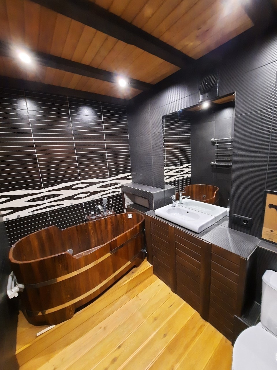 Квартира только после кап ремонта. заменена электропроводка, трубы. сделан пирог пола (стяжка, гидроизоляция, утепление, пароизоляция). Установлены новые окна, дверь. установлены наружные металические ролшторы(день/ночь) . В квартире установлен большой шкаф-купе. В отделке много дерева. Деревянные балки на потолке. Стены( мозаика из массива дерева, кирпич, обои(ткань/лён) . Полы декоративное osb(двойная шлифовка, покраска и нанесение двойного слоя лака). В ванной полы массив( сибирская листвинница) и тд. Дополнительная информация по телефону. Делал для себя, продаю в связи с переездом в другой город. Живу не в Барановичах. Купель в стоимость не входит.