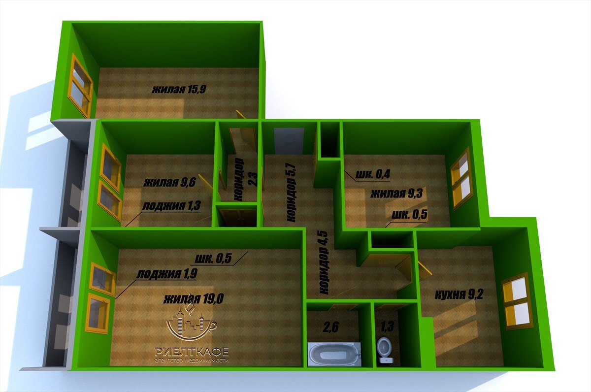 Четыре изолированные комнаты, интересная планировка, встроенные шкафы, просторный коридор, раздельный санузел. Окна заменены на стеклопакеты, две лоджии 1.9 м2 и 1.3 м2. Окна квартиры выходят на обе стороны, входная металлическая дверь.