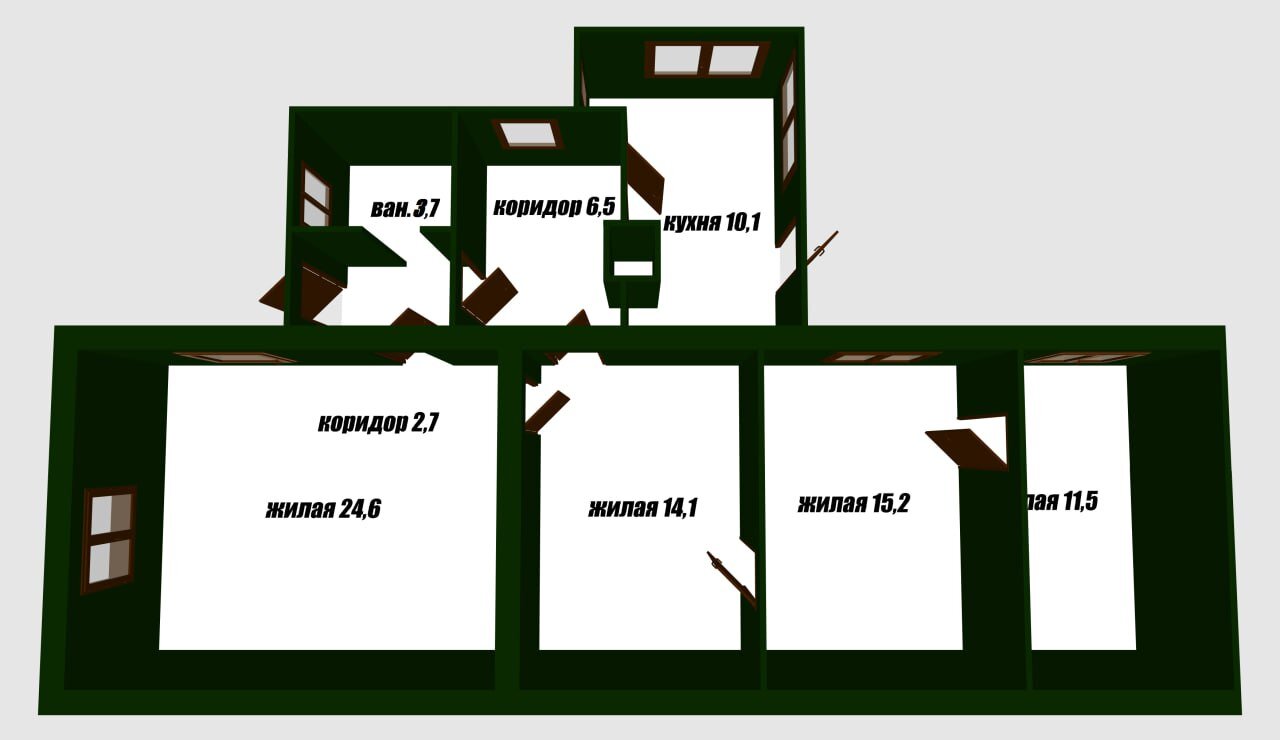 4 жилые просторные комнаты, санузел совмещенный выложен плиткой.