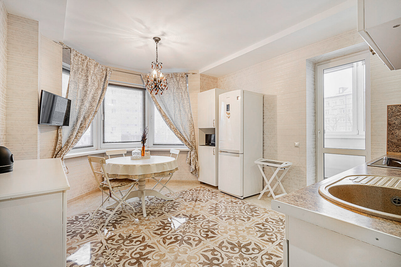 - Полная меблировка и техника: вся необходимая мебель, вместительные шкафы, современная кухня с посудомоечной машиной, холодильником, варочной панелью и духовкой, а также стиральная машина, телевизор, СВЧ-печь, Wi-Fi. Заезжайте и живите без лишних хлопот!