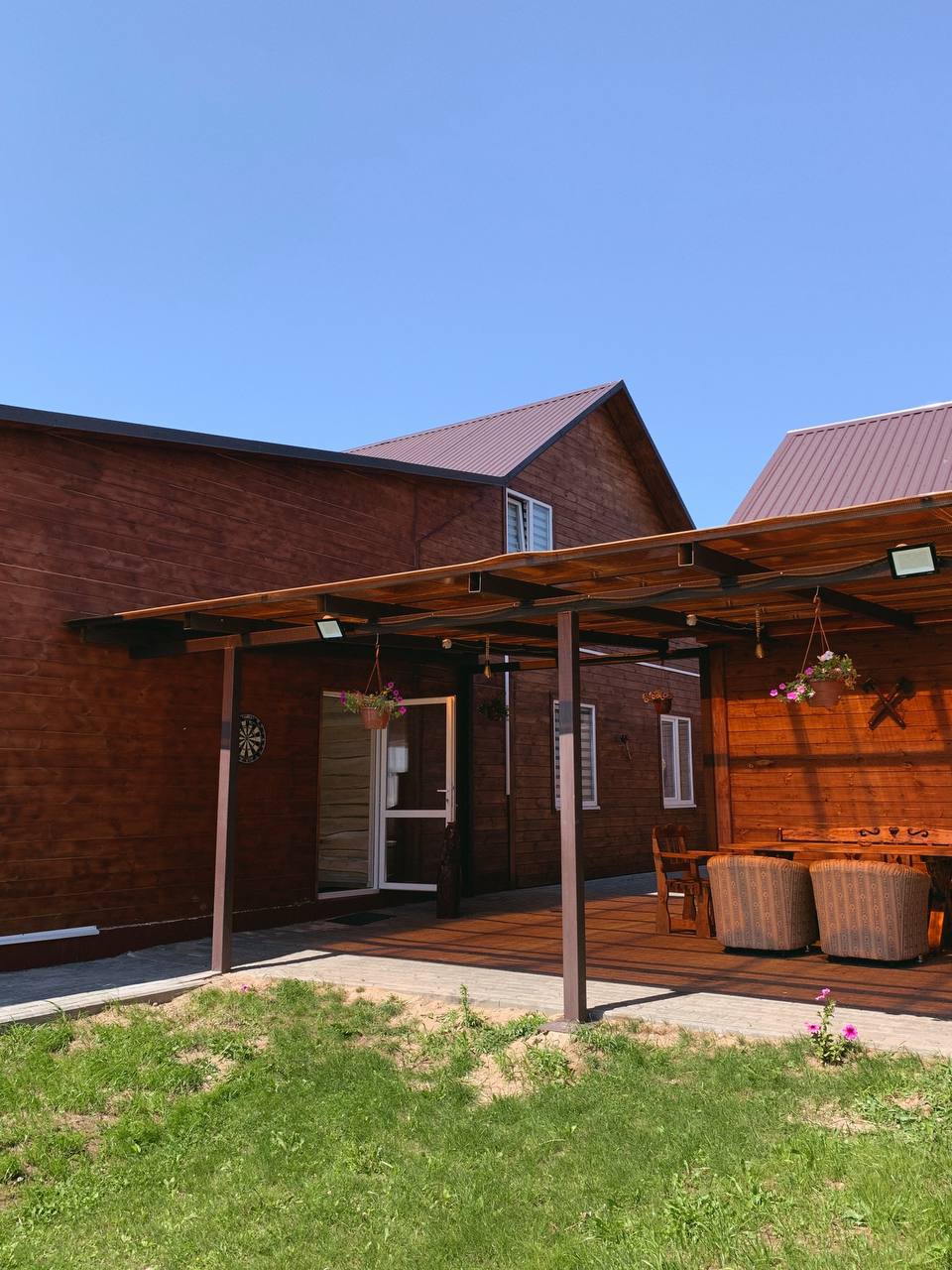 Рядом с каждым домом зона барбекю и большая крытая терраса, которая прекрасно защитит вас от дождя и не испортит ваш отдых в непогоду.